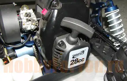 Полноприводный монстр, 3 дифференциала со стальными шестеренками, стальные шестерни коробки передач, маслонаполненные амортизаторы, рулевая серва - 15 кг, двигатель Smartech 28cc.