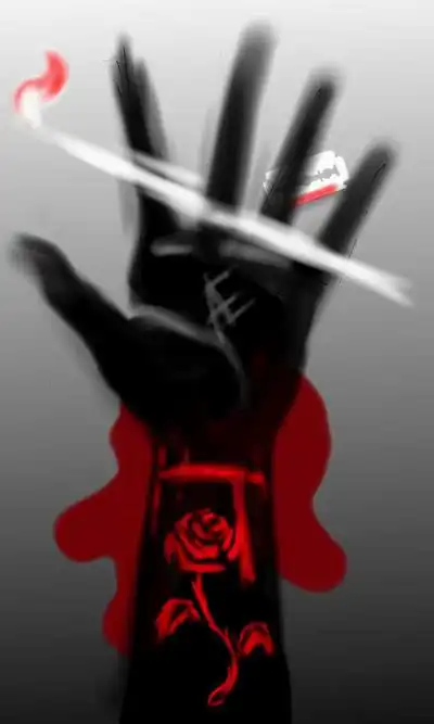 Присутствуют работы, которые, по сути, являются утерянными остатками человеческих чувств, граней: «нарисуй цветок, и в тебе его больше не останется, вырежи его с корнем» - кровавый катализатор. Умиление, восхищение, грязный импульс, разрушение идеала, осквернение.