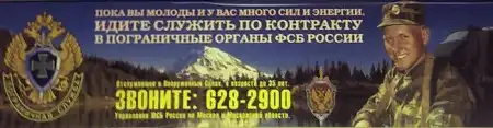 "Пока вы молоды и у вас много сил и энергии, идите служить по контракту в пограничные органы ФСБ России. Телефон ..."