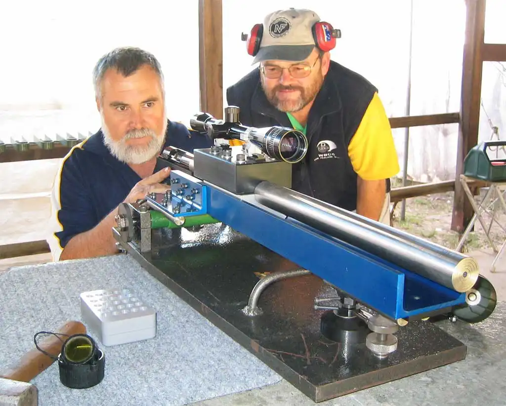 Бенчрест это стрельба на кучность, т.е. стрельба групп, где основной целью является уложить все пять выстрелов в одну точку. Надо постараться, что бы группа выглядела как одна пробоина, потому что очки определяются измерением расстояния между внешними краями самых дальних пробоин за вычетом диаметра пули.