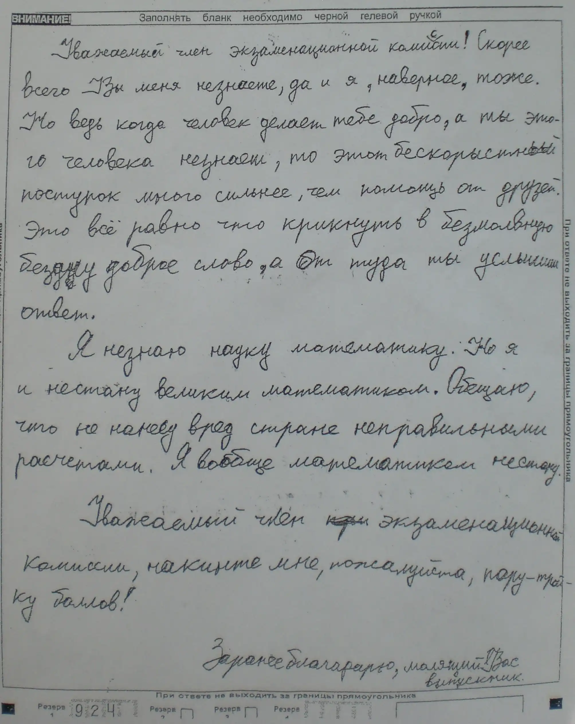 Как известно сейчас пора вступителных испытаний в ВУЗы. В ТПУ не так давно прошел вузовский этам ЕГЭ по математике. И вот какое решение было представлено одним из абитуриентов на часть заданий С.