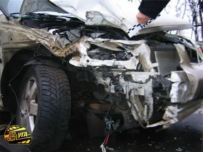 В результате этой аварии у Chevrolet полностью изувечен передок, но зато трактор отделался покореженным колесным диском и разбортированным колесом. Радует, что никто в ДТП не пострадал.