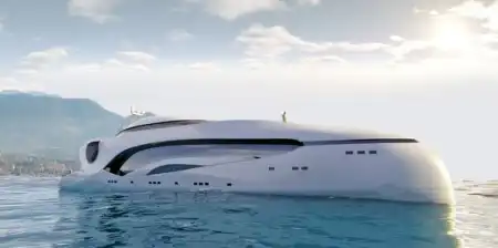 Огромная яхта Oculus похожая на морское чудище может проглотить 12 человек и переваривать их в роскошных каютах, перемещаясь по морям и океанам со скоростью 25 узлов.