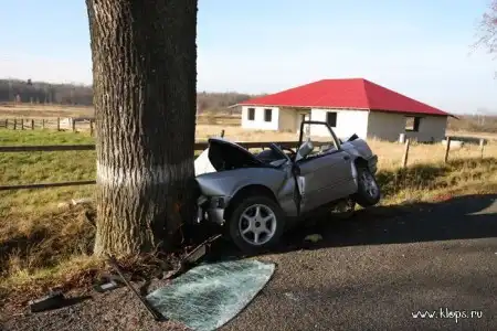 На 15-м километре дороги между поселками Зорино и Красное в Калининградской области в дерево врезался автомобиль BMW-320.