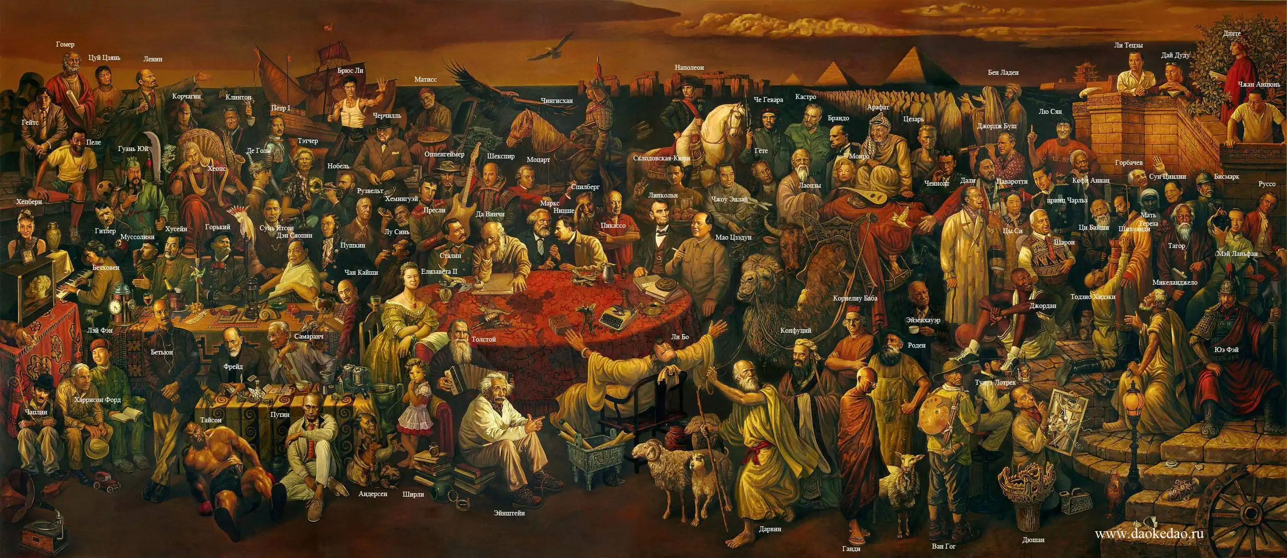 Монументальное полотно современных китайских художников Дай Дуду, Ли Тецзы, Чжан Анцюня с цветистым названием, которое буквально можно перевести как «Одухотворенная песнь дискуссии с Данте» . Размер картины 6 х 2,6 метра.