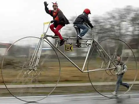 В общей сложности El Diablo построил более 100 необычных самодвижущихся аппаратов. Были среди них и другие рекордсмены. В том числе и невообразимо гигантский лежачий велосипед-тандем длиной 12,4 метра, с пассажирами, болтающимися параллельно земле на высоте 6,65 метра.