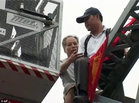 Как сообщается, 66-летний китаец прорвался через полицейский кордон и столкнул потенциального самоубийцу с моста.