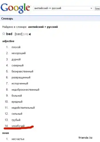 Думаю вы немало знаете значений перевода английского слова bad. Вот некоторые примеры: плохой, нехороший, дурной, скверный, безнравственный, развращенный, испорченный .... Словарь Google порадовал, и дал еще одно значение этого слова.