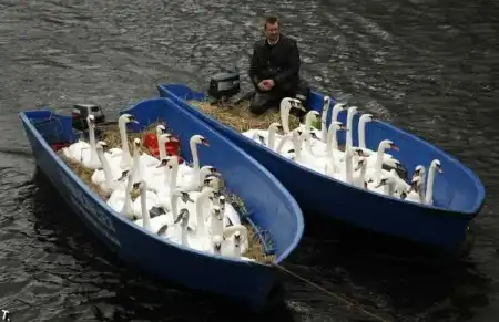 Каждую осень работники парков в Гамбурге перевозят лебедей в специальные постройки, в которых те живут до наступления весны.
