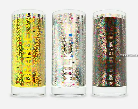 Дизайнер Дамьян Станкович предлагает очередной оригинальный концепт, который уже стал победителем Reddot design 2009. Речь о так называемых "зашифрованных" стаканах. Когда эти стаканы пустые, кажется, что они просто покрыты узором из множества разноцветных квадратиков. Но когда в них наливаешь молоко, апельсиновый сок или колу, на одной из граней сосуда проступает название наливаемого напитка. И тогда, приглядевшись, понимаешь, что квадратики расположены вовсе не хаотично, и цвет жидкости имеет большое значение… Однако выглядит все просто волшебно.