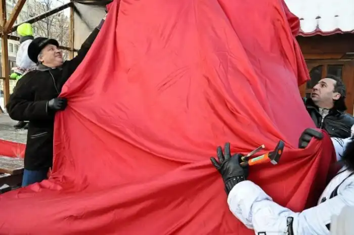В воскресенье в центре Москвы появилась - и через 10 минут исчезла - гигантская конфета. 50-килограммовый леденец “петушок на палочке”. Ее съели зрители, разбив на маленькие кусочки