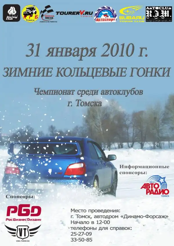31 января 2010 г. в 12-00 на автодроме «Динамо-Форсаж» состоится чемпионат по зимним кольцевым гонкам среди автоклубов г. Томска