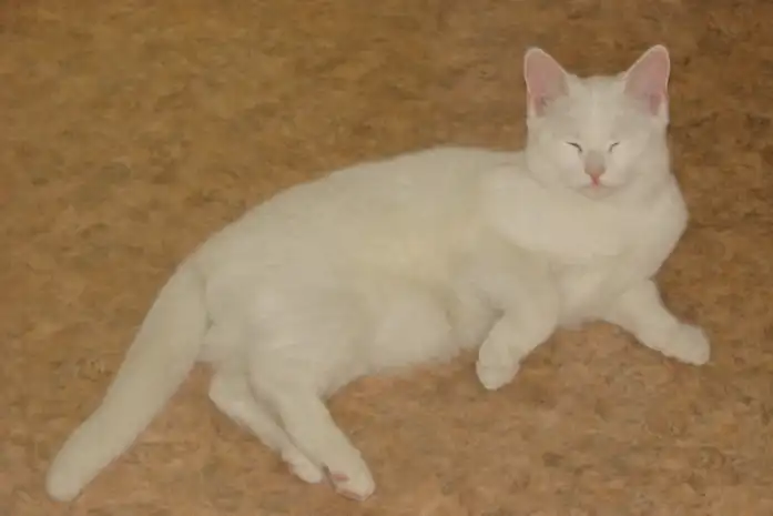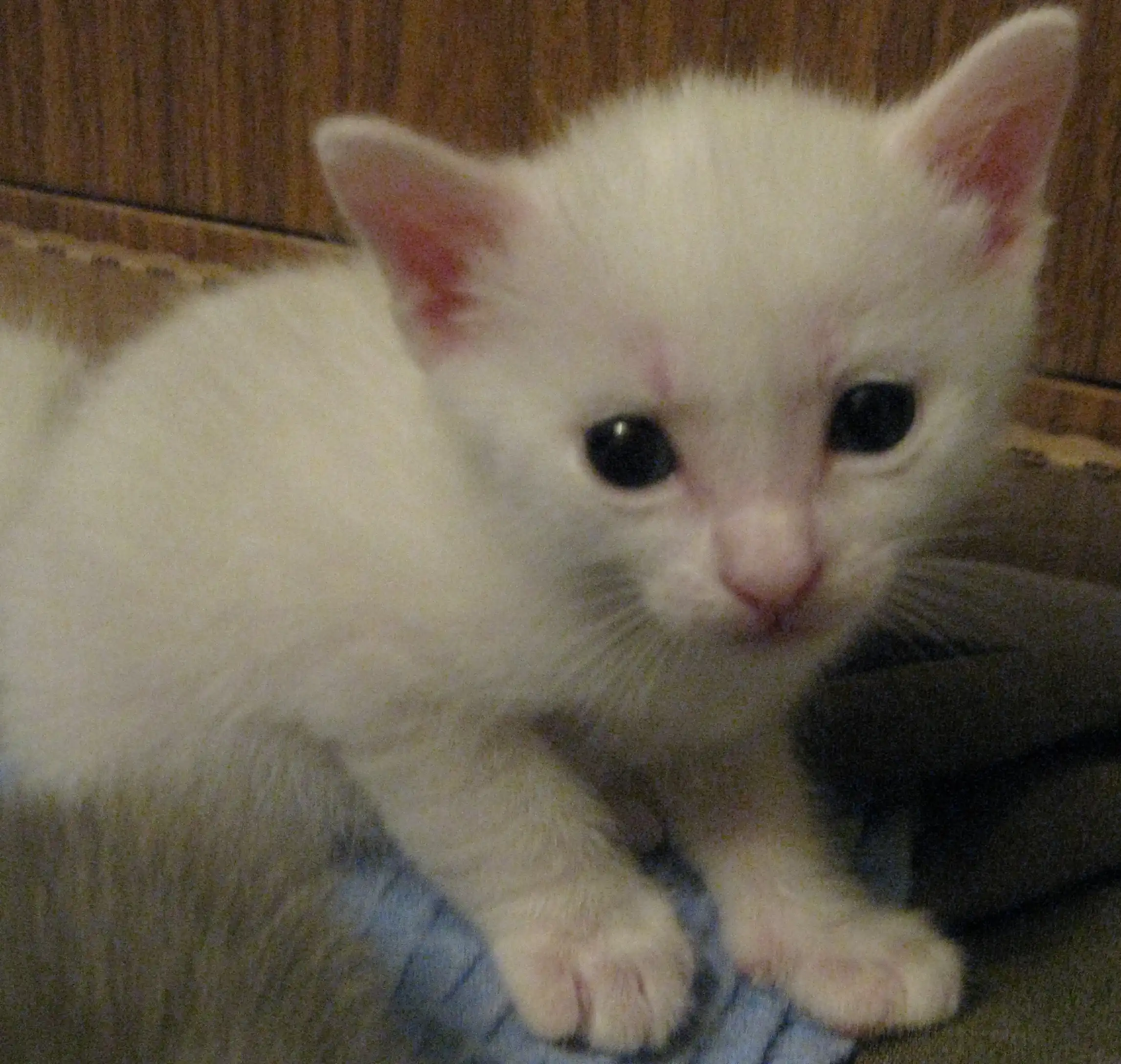 Абсолютно белый, 4 месяца. Кошка с родословной случайно нагуляла осенью. Думали оставлять себе, но что-то много 2 кошек для городской квартиры. Будет большой белый кот, эксклюзив!