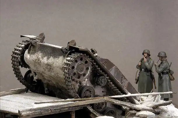 Комментарий автора : "Работу делал под влиянием известной фотографии Штуга версии А на Балканах зимой 1941 года".
