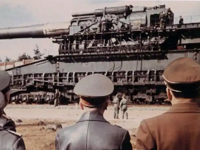Самое тяжёлое железнодорожное артиллерийское орудие было изготовлено по приказу Гитлера . Это была пушка Дора ( второе название Тяжелый Густав ).