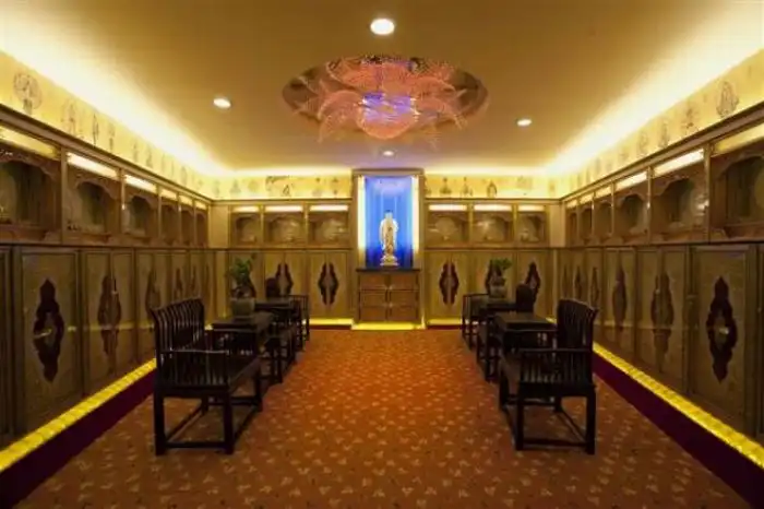 В роскошной обстановке этого колумбария можно с комфортом "пообщаться" с умершими людьми.