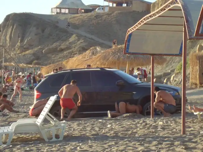 Обсыпали всех людей которые были на пляже, поломали все перегородки и вдобавок ко всему когда спускались вниз с горы (там очень крутые горы и машины с низкой посадкой очень тяжелой по ним ездят).