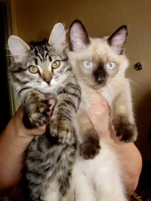 Кошечка тигровой окраски и сиамский котик ищут своего хозяина. Ласковые