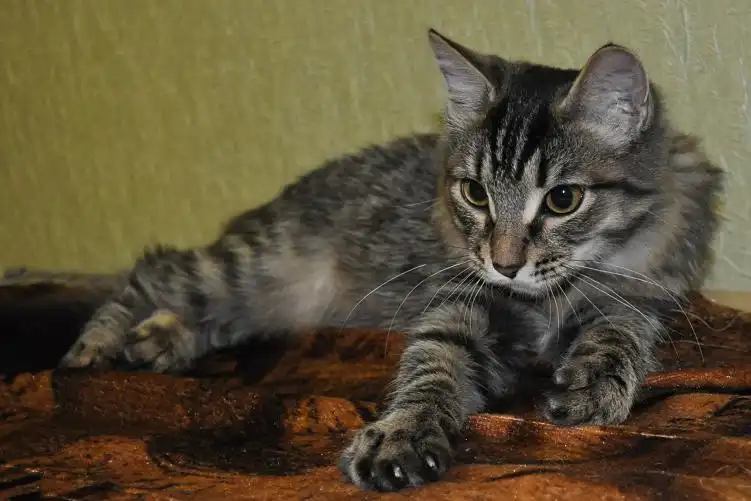 Обещает вырасти в крупного, роскошного кота. В окрасе есть что-то от сибирской кошки, чем-то на рысёнка похож.