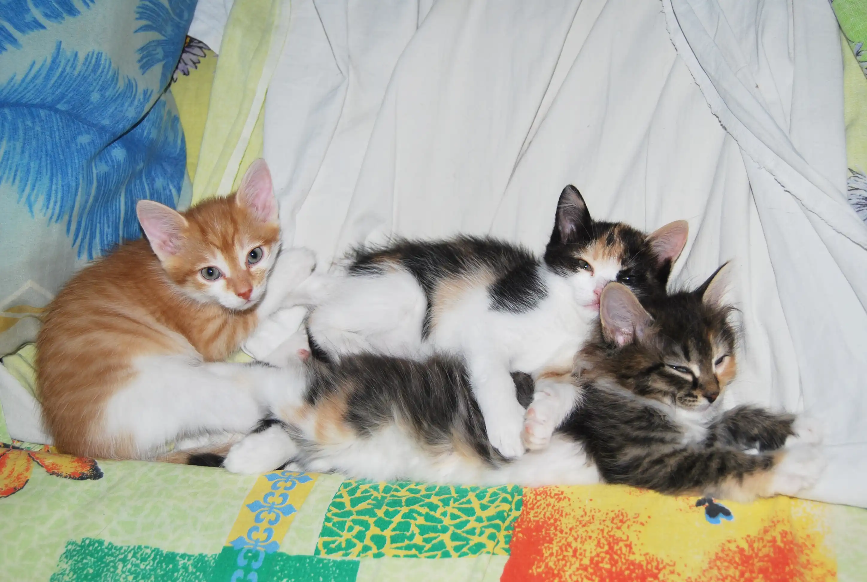 Отдам забавных котят (2кошечки и бело-рыжий котенок). Очень игривые и забавные. Родились 16октября 2010г.