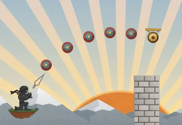 Нужно уложиться и сбить все тарелки, чтобы перейти на новый уровень.Чтобы увеличить дальность полёта стрелы зажимайте левую кнопку мыши.