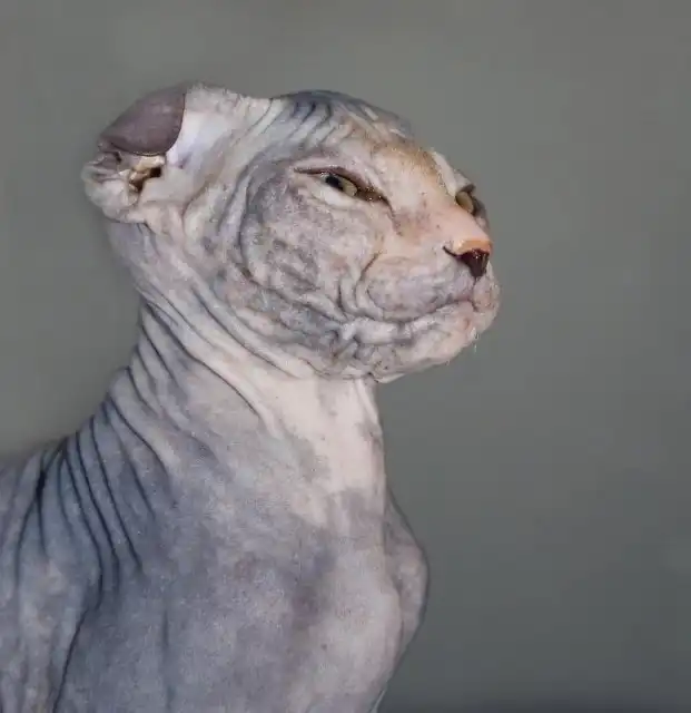 Украинский левкой – селекционная порода кошек, в основу которой были заложены две естественные доминантные мутации : бесшерстность и вислоухость.