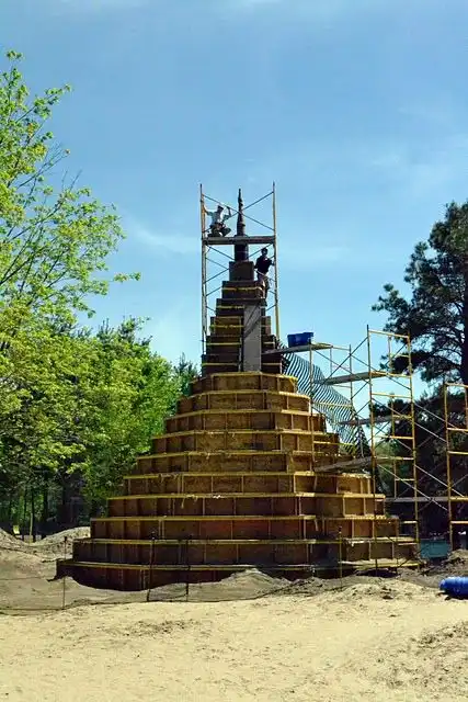 Ed Jarrett построил свой первый замок в 2003 году. Потом он решил сделать замок побольше, потом еще больше и еще. В итого с 1500 добровольцами он построил САМЫЙ большой песчаный замок в мире. На это у них ушло 2500 часов. first built the world’s tallest sand castle in 2003, then broke his own record in 2007, and now his back with his third consecutive record, a 37-foot, 10-inch sand marvel.