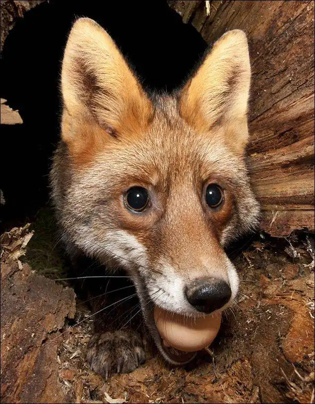 Однажды фотограф Horst Jegen заметил, что у его кота кто-то ворует еду. Тогда он решил подстеречь воришку.Для этого была сделана сложная ловушка с кнопкой и фотокамерой. Яйцо послужило приманкой.И вот результат – наглая рыжая морда поймана на месте преступления.