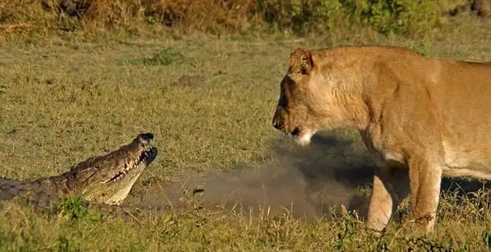 Крокодил попытался напасть на детенышей львиц, но не тут-то было...
