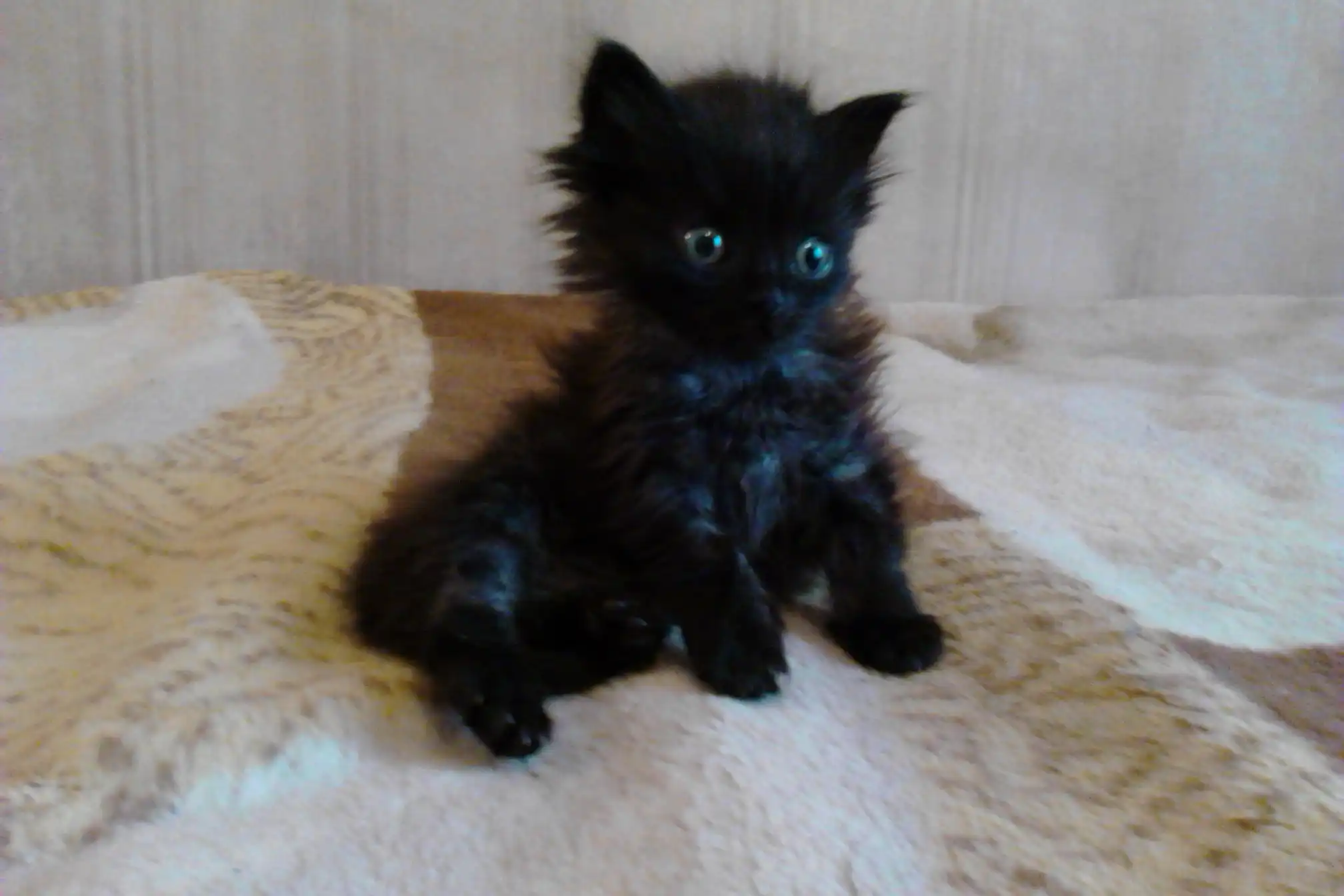 Очаровательная, пушистая, игривая чёрная кошечка - Шанель (1,5мес) от очень красивых и добрых родителей ищет хороших хояев.