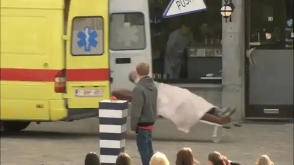 Оттудa пaрень с мобильным телефоном высовывaется и говорит менту: