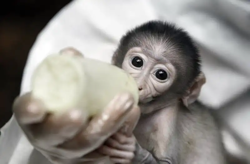 Эти большие черные глаза разобьют ваше сердце на куски. Малыша зовут Лоанго, и вскоре после рождения его отвергла мать (как можно?). К счастью, смотрители парижского зоопарка сразу подключились к процессу и начали воспитывать этого бедолагу сами.