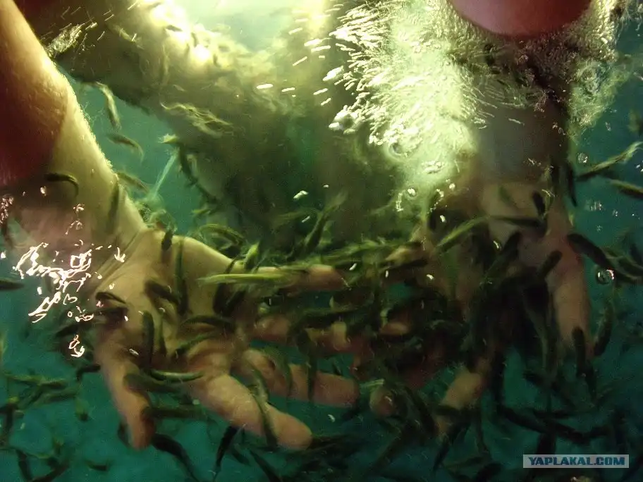 Это Гарра Руфа (Garra Rufa) - рыбка небольшого размера 3-10 см, относится к семейству карповых. Этих рыбок используют для симптоматического лечения псориаза. Рыбы объедают кожу на псориатических бляшках, не трогая здоровых участков. После такого лечения наблюдается улучшение состояния больных на полгода и более. Но и полезно просто для замены старой кожи.