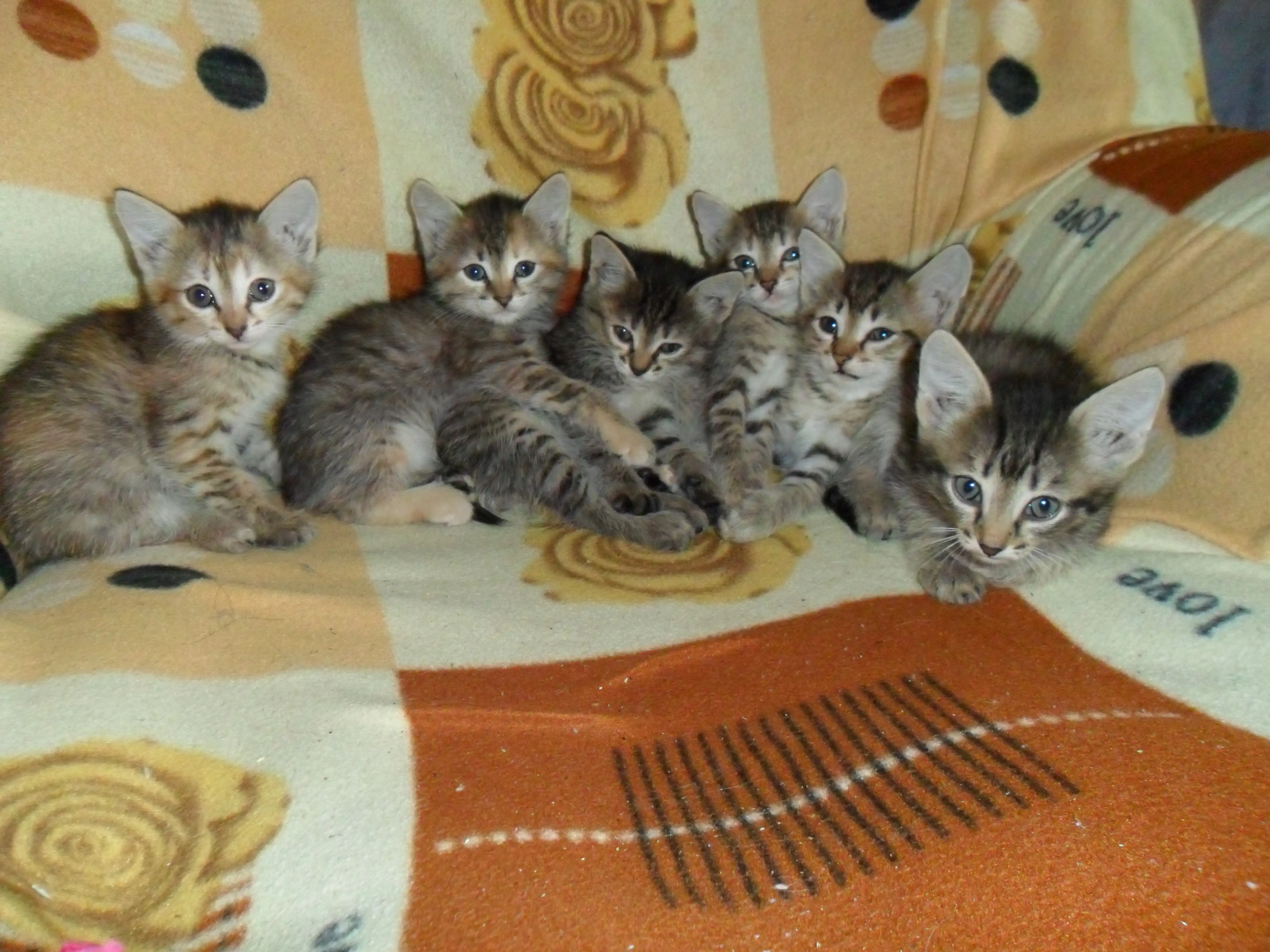 Котятам 1 месяц, кушают сами, к лотку приучены.