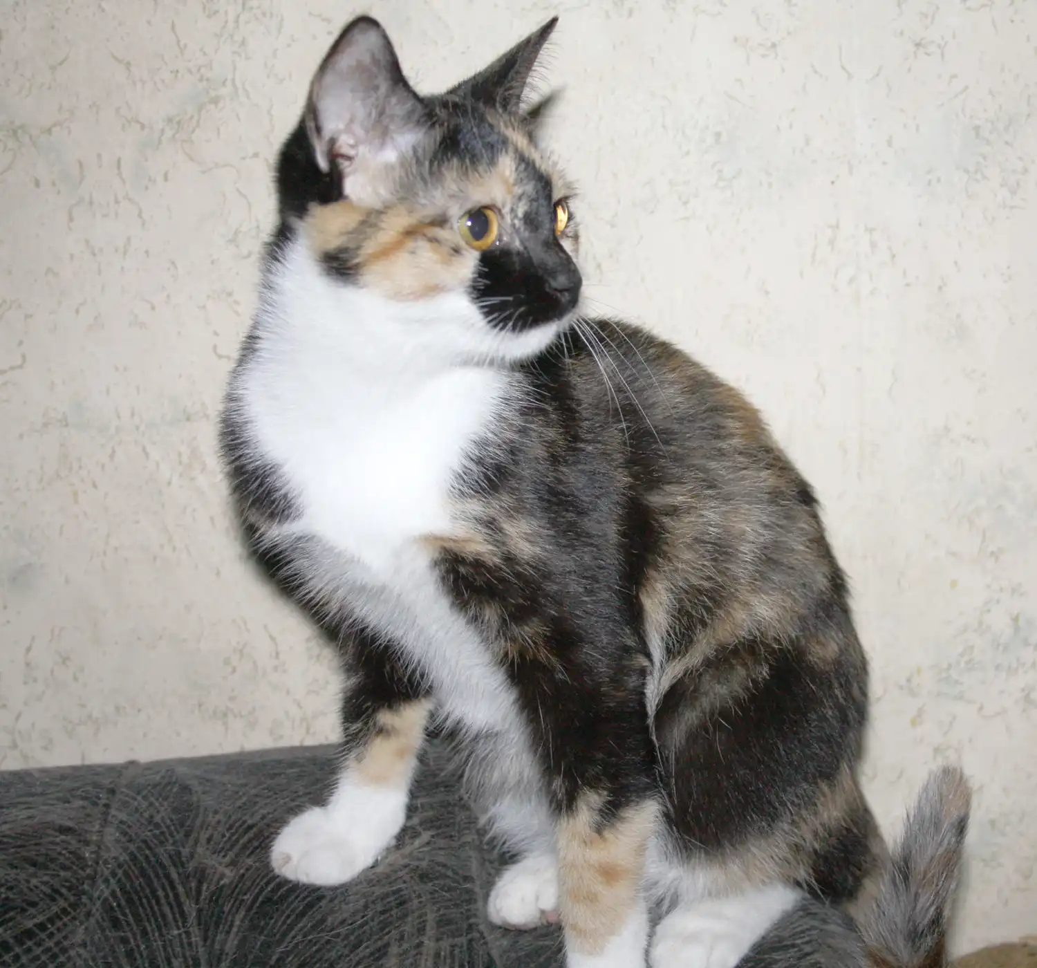 Ищет дом строгая на вид, но очень добрая по характеру кошечка. Прекрасно уживается с другими кошачьими. Издавна считается, что трехцветные кошки приносят счастье.