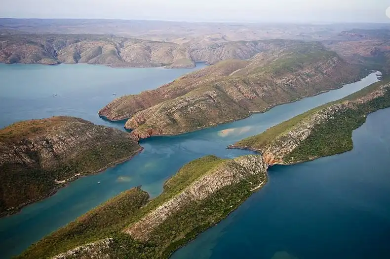 Горизонтальные водопады расположены в бухте Талбот в области Кимберли, западная Австралия. И хотя их и называют водопадами, это естественное явление фактически представляет собой несколько ущелий в горной цепи Макларти. Когда большое количество воды направляется по ущелью, вызываемое приливными волнами, возникают временные водопады высотой до 5 метров. Когда меняется направление потока, также меняются и направления водопадов.