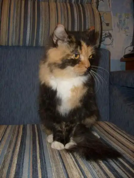 Яркая, нарядная, с маленькими ушками и слегка плоской мордочкой кошка Люся была отобрана у собак. Кошка крупная (вес 4 кг), спокойная, кушает натуральный и сухой корм, возраст больше года. Правила поведения в квартире знает отлично. Т.к. бывшие хозяева не нашлись, отдаем в хорошие надежные руки. Стерилизована.