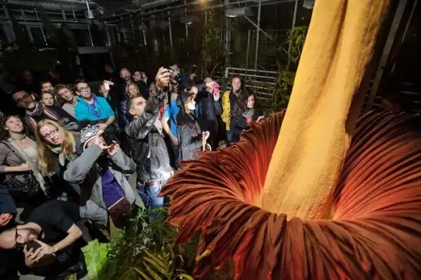 Цветочек этот пахнет тухлым мясом, но это не помешало сотням любопытных людей придти и полюбоваться гигантом.