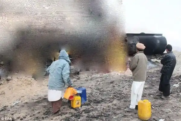Местные аборигены взорвали бензовоз НАТО в Афганистане и пока горючка сильно не разгорелась, они начали заполнять емкости горючей смесью. :crazy: