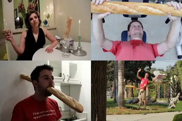 В западных интернетах новая мода – Багетинг. Суть очень проста, люди фотографируются в самых обычных ситуациях, заменяя один предмет свежеиспеченным французским багетом.