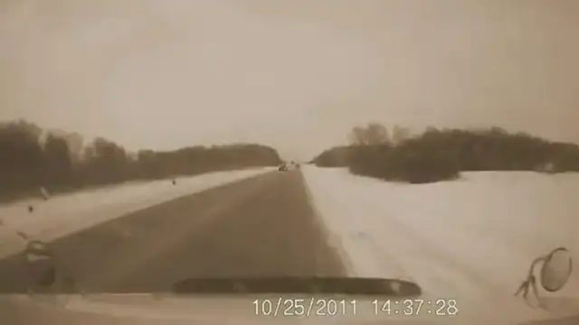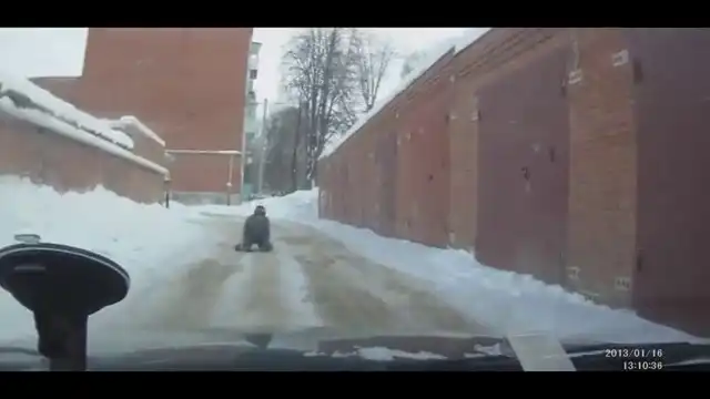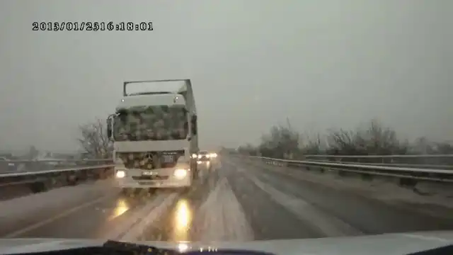 Водителя развернуло на льду на 180 градусов против движения, но он даже не растерялся ;) Наверное, парень точно пересмотрел фильмов по типу "Форсаж", и решил повторить подвиг главного персонажа из кино :)