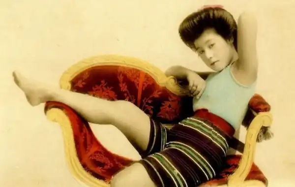 Гейши, позирующие в купальниках на пляже — открытки с такими изображениями в Японии рубежа 19 и 20 веков были самым популярным (и, вероятно, единственным известным) видом пин-апа.