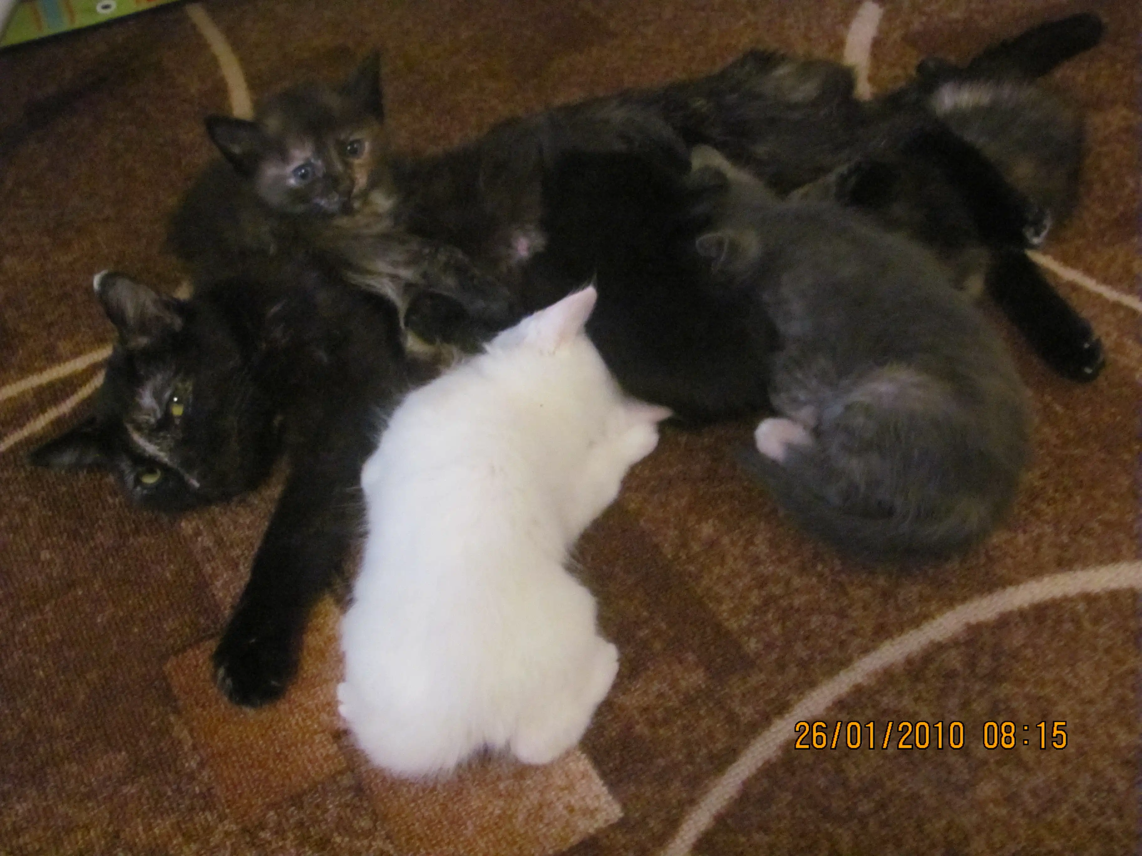 Отдам котят в хорошие руки. Четыре девочки, черненькая, серенькая черепаховая и две черепашки черных. Уже пытаются лакать молоко и едят молочный суп свермишелькой. Кому надо могу привезти на дом. Мой тел. 89069502286.
