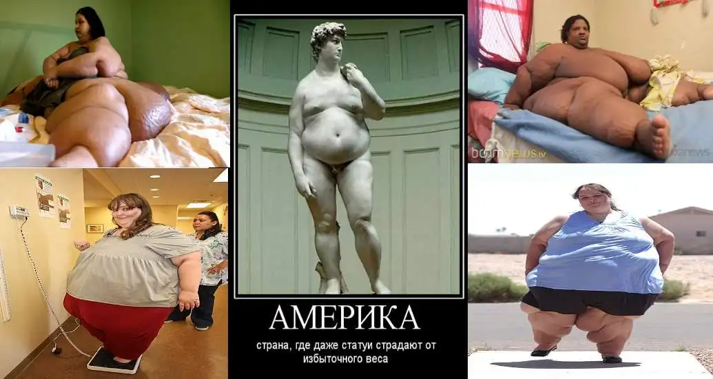 В Америке очень много толстых людей. В России вряд ли все так плохо с ожирением, как в Штатах, потому, что наша еда не настолько ужасна и не направлена на то, чтобы постоянно нашпиговывать детей и взрослых супержирами, огромным количеством сахара и углеводов. Быть толстым в Америке очень просто. Гораздо сложнее быть здоровым.