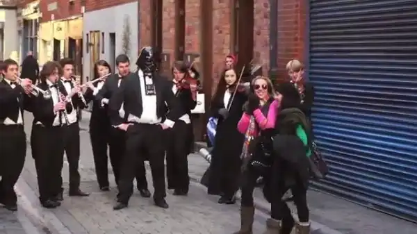 Для участия в параде надо было пройди жесткий дресс-код: три полоски, барсетка, туфли, четки, олимпийки и семечки были обязательными атрибутами. После шествия участники присели на корточки и исполнили популярные дворовые хиты.