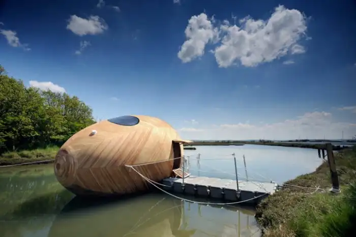 Объединение британских SPUD Group, PAD Studio и дизайнера Стивена Тернера (Stephen Turner) разработало проект плавающего деревянного дома Exbury Egg, архитектура которого была вдохновлена формой яйца.