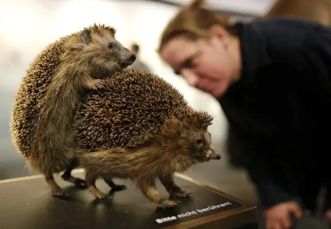 В Германии прошла необычная выставка работ таксидермистов на тему секса в мире животных. Среди всех скульптур сношающихся парочек больше всего интереса у меня лично вызвал половой акт ёжиков. Теперь то я знаю, как они занимаются любовью - так же, как и все остальные. Есть в этом изрядная доля садомазохизма.