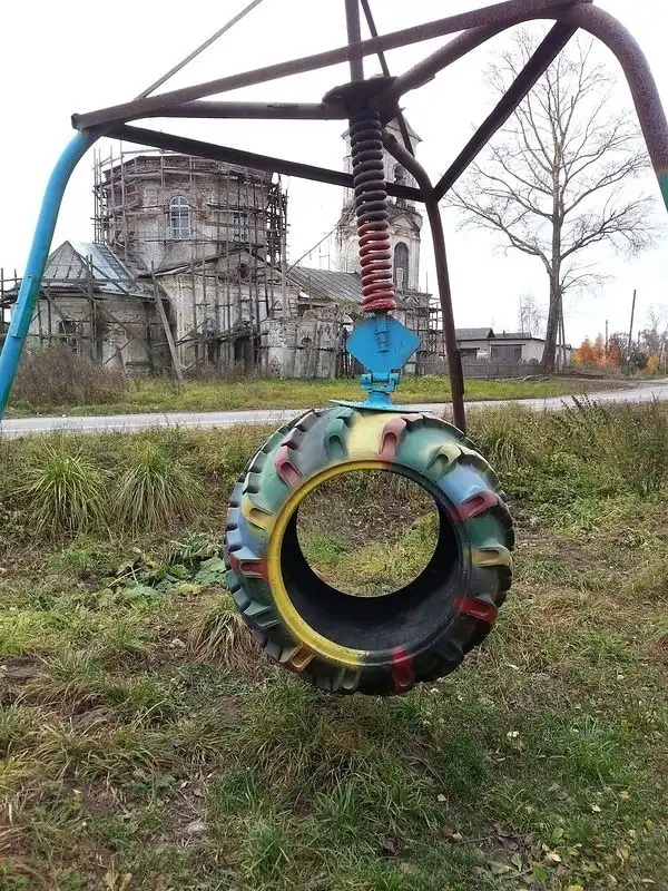 Юрий Чистяков из деревня Слобода, что в Тверской области, нашел отличное применение старым запчастям от сельхозмашин и прочему металлолому - он собственноручно соорудил детскую площадку из всего этого добра. Вот так все у нас в стране: от правительства не дождешься, так что приходится все делать самому. Выглядит немного индустриально, конечно, но детям нравится.