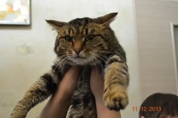 Кеша - большой добрый полосатый кот с зелеными глазами, долго жил в подъезде на Каштаке, откуда его периодически выгоняли. Кот робкий и интеллигентный, спокойный, людей до сих пор побаивается, как и других кошачьих. Очень яркий полосатый окрас, на спине необычные разводы, можно даже сказать мраморные. К сожалению, на фото получился плоховато, боялся. Питается готовыми кормами, пользуется лотком. Кастрирован.
