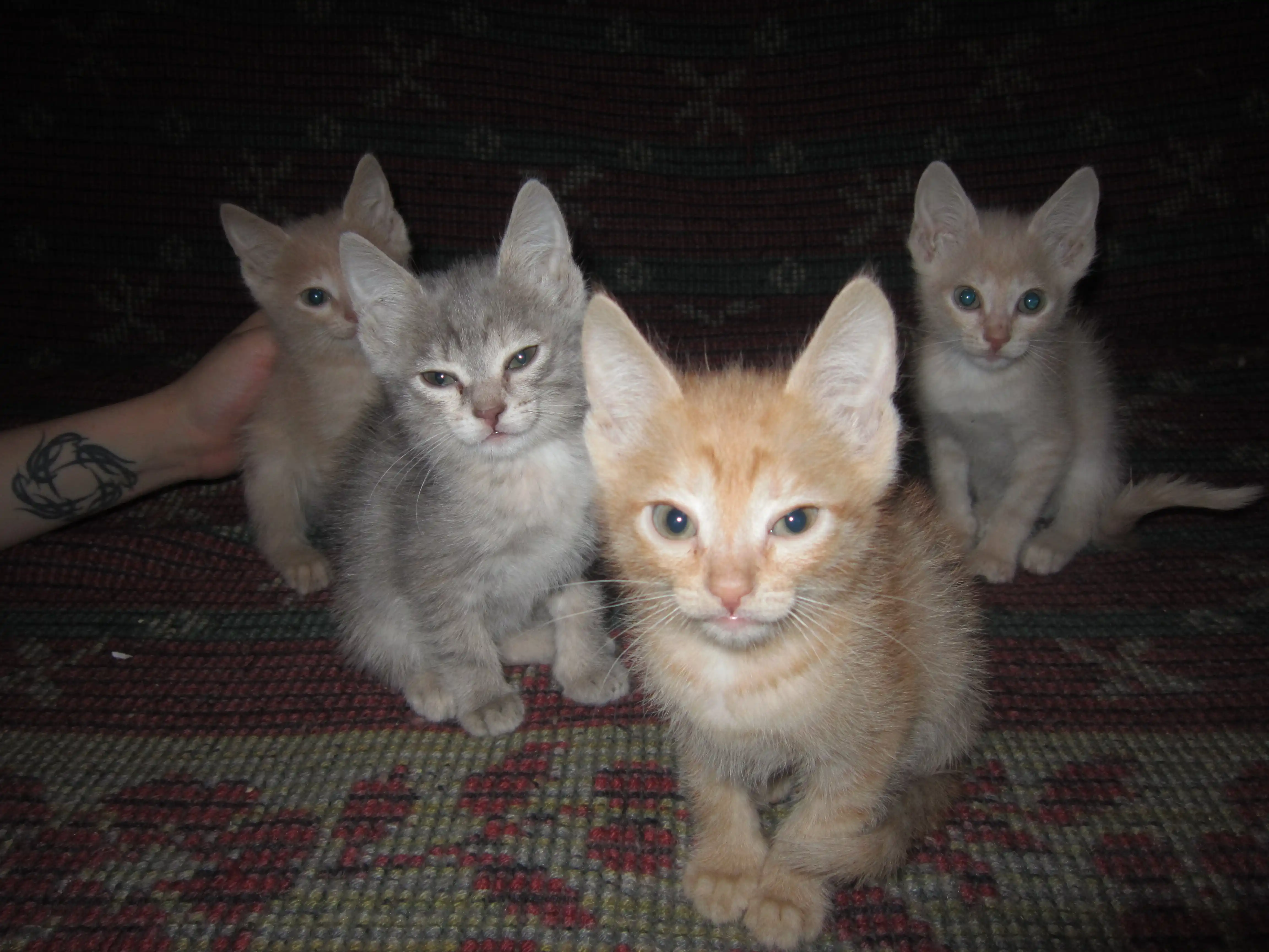 Все котята разноцветные, приучены к лотку, неприхотливы в еде, любимая еда: супчик!!! :) Котятам около двух месяцев